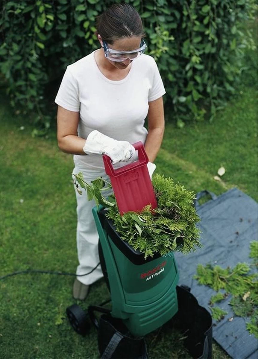 De AXT Rapid 2200 is een snelle en toch krachtige tuinhakselaar. Hij heeft uiterst duurzame Zwitserse lasergesneden precisiemessen die voor een langere gebruiksduur ook kunnen worden omgekeerd. Hij kan zacht groenafval met gemak hakselen, zelfs takken tot 40 mm dik. Een Highspeed-Powerdrive-motor van 2200 W van Bosch levert het hoogste draaimoment in zijn klasse voor moeiteloos hakselen. Hij is licht en kan gemakkelijk over gazons, terrassen en zelfs tuintrappen worden verplaatst. De snelle vultrechter en de praktische aanduwstok zorgen voor een snelle en efficiënte doorvoer van tuinafval met maximaal 90 kg per uur.