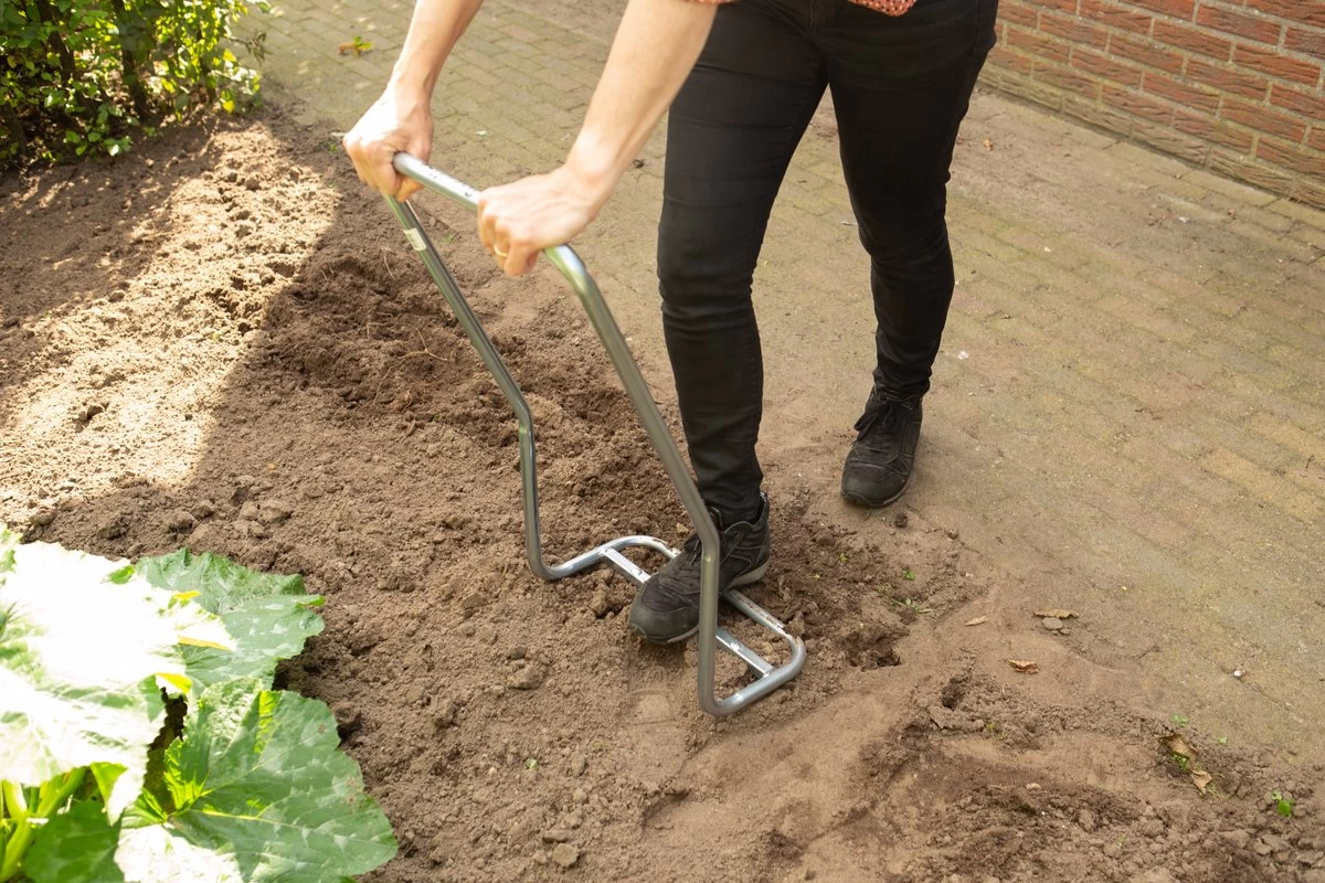 Woel vork of Grelinette is uitermate geschikt om uw moestuin om te woelen en daarbij de permacultuur in tact te houden. Door de ergonomische vorm minderkans op rugklachten