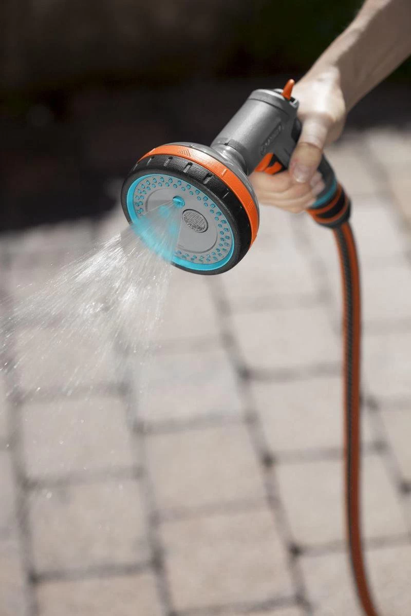 De Gardena Comfort Multi Broes is ideaal voor diverse bewaterings- en reinigingsklussen. Bij deze broes is de waterstraal instelbaar in vijf standen. De nevelstraal is perfect voor het bewateren van zaaigoed. De zachte straal of broesstraal zorgt ervoor dat de bloembedden goed kunnen worden bewaterd. De harde straal is voor reinigingswerkzaamheden. De softgrip componenten zorgen voor een slipvaste grip op de Comfort multibroes. De ergonomisch vormgegeven impulshendel kan met de geïntegreerde knop worden vastgezet. De waterstraal is met 1 vinger traploos in te stellen. Een geïntegreerd filter zorgt er voor dat er geen vuil in de broes zelf kan komen. Dit filter kan eenvoudig worden losgehaald en gereinigd.