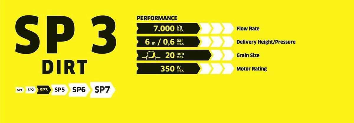 Waterputten en tuinvijvers snel leegpompen is absoluut geen probleem voor de SP 3 Dirt dompelpomp, dankzij zijn pompcapaciteit tot wel 7.000 liter per uur. Hij pompt op een betrouwbare manier zowel schoon als vuil water op met vuilpartikels tot een grootte van 20 millimeter. Een extra voorfilter beschermt de rotor van de pomp wanneer de vuilpartikels groter zijn. Bovendien is de dompelpomp uitgerust met een vlotterschakelaar, die de pomp aan- en uitschakelt in functie van het waterpeil, waardoor hij beschermd wordt tegen droogloop.